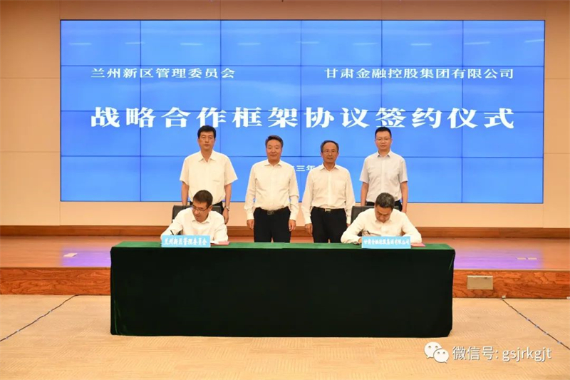 7月28日,甘肅金控集團(tuán)與蘭州新區(qū)管委會(huì)簽訂戰(zhàn)略合作框架協(xié)議。集團(tuán)黨委書記、董事長,華龍證券黨委書記、董事長祁建邦出席并見證簽約。蘭州市委常委、新區(qū)黨工委書記楊建忠,新區(qū)黨工委副書記、管委會(huì)主任李東新,集團(tuán)黨委委員、副總經(jīng)理龍飛出席簽約儀式。集團(tuán)黨委委員、副總經(jīng)理趙星軍、新區(qū)黨工委副書記張愛勝分別代表雙方簽約。新區(qū)管委會(huì)副主任楊軍主持簽約儀式。