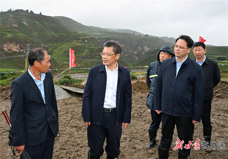 8月26日,省委副書記、省長任振鶴在榆中縣調(diào)研災(zāi)后恢復(fù)重建工作。(記者盛學(xué)卿)