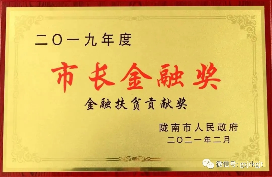 薛小勇授予金控隴南擔(dān)?!?019年度市長(zhǎng)金融獎(jiǎng)”