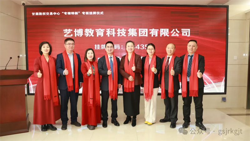 一元復(fù)始,歲華新至。2026年開篇之月,藝博教育科技集團(tuán)有限公司(以下簡(jiǎn)稱“藝博集團(tuán)”)在甘肅省“專精特新”專板掛牌儀式圓滿舉行。藝博集團(tuán)董事長(zhǎng)盧永鋒及甘肅股權(quán)交易中心主要負(fù)責(zé)任人出席儀式并致辭,藝博集團(tuán)總經(jīng)理魏明雪及核心骨干共40余人參加此次活動(dòng)。